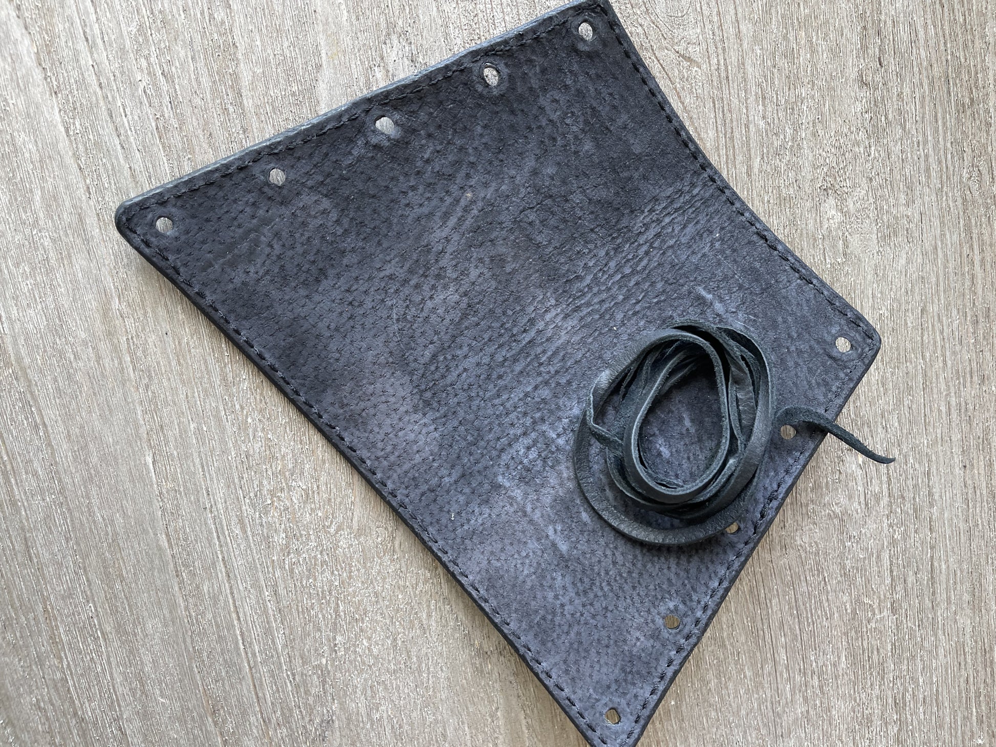 Premium buttstock sleeve and shell holder made from full-grain leather finished in various colors. Features stitched-on loops with 8 shell capacity, grommets, pigskin lining, and our tough grizzly lacing for a secure connection to the rifle. Your choice of colors: matt black, crazy horse gray, golden brown, and crazy horse brown. Grommets for the black and gray are antique nickel and the browns have antique brass. Your choice of black or brown lace. Available in right- or left-handed and practically any cartridge size. This is a cool, functional, and durable leather accessory for your rifle. We also offer slings and lever wraps in matching leather.