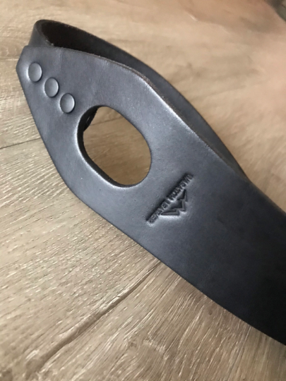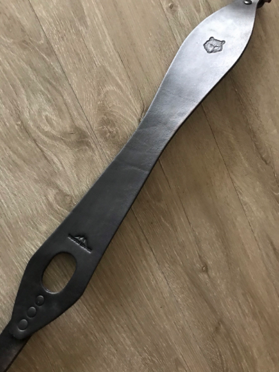 Premium thumbhole rifle sling. Features a wide profile (3-inch max width) with a thumbhole for secure and comfortable carrying. This sling is rugged and top quality. It’s made from thick 9-10 oz Herman Oak veg-tanned leather, the finest there is.